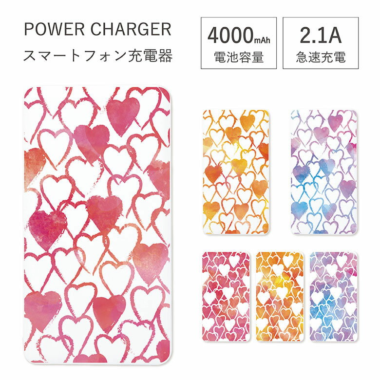 (土日限定15%OFFクーポン) 【PSE適合品】 当店オリジナル商品 水彩ハート USB出力 リチウムイオンポリマー充電器 2.1A 4000mAh Android iPhone対応 グラデーション | 充電器 充電機 バッテリー 防災 モバイルバッテリー 災害用 スマホ 非常用