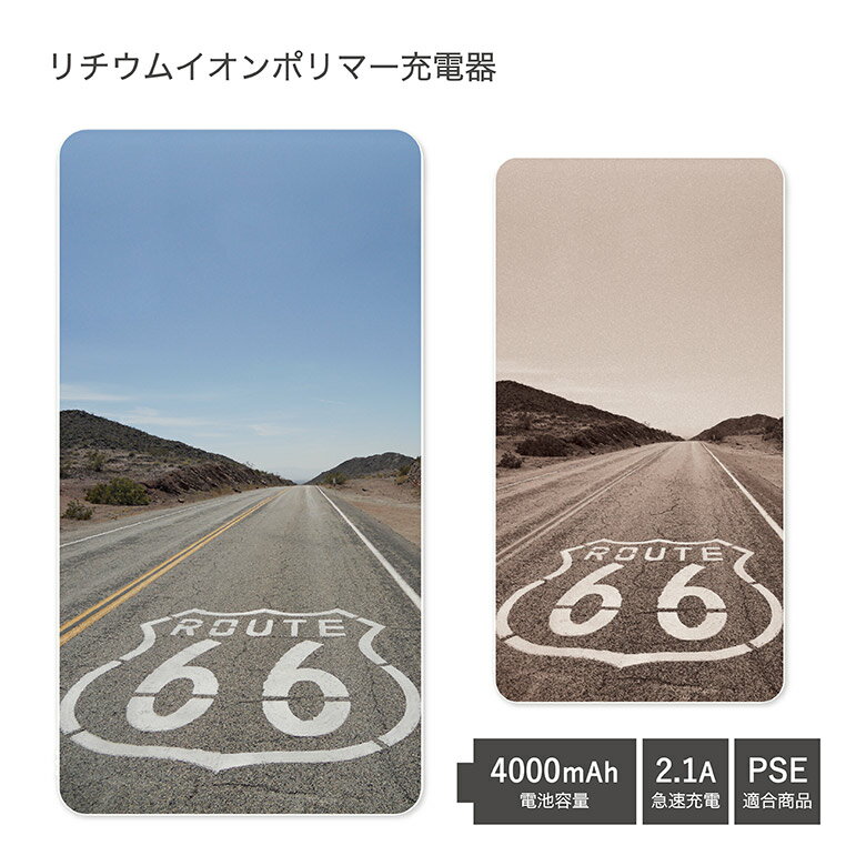 【PSE適合品】 No66 Route66 受注生産 急速充電 USB出力 リチウムイオンポリマー充電器 2.1A 4000mAh モバイルバッテリー iPhone Android アメリカン セピア ルート66 d:pho | 充電器 バッテリー 防災 災害 スマホ スマホバッテリー 持ち運び microUSB充電器 ケーブル内蔵